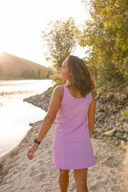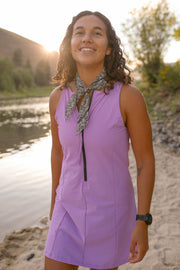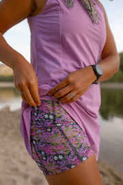 The summer dress that does it all thanks to a spandex shorts liner (with pockets) and a structured bra top. IT'S REVERSIBLE! Wear the zipper in the front or the back Made from our crowd favorite Everlast fabric - a dreamy textured bio-nylon that we make a lot of things from.