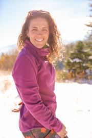 This cozy tunic has long sleeves, a tall cowl neck and a scooped hem that covers your hips. It makes an excellent base layer and the cowl neck functions as a built-in neck gaiter! True to size.